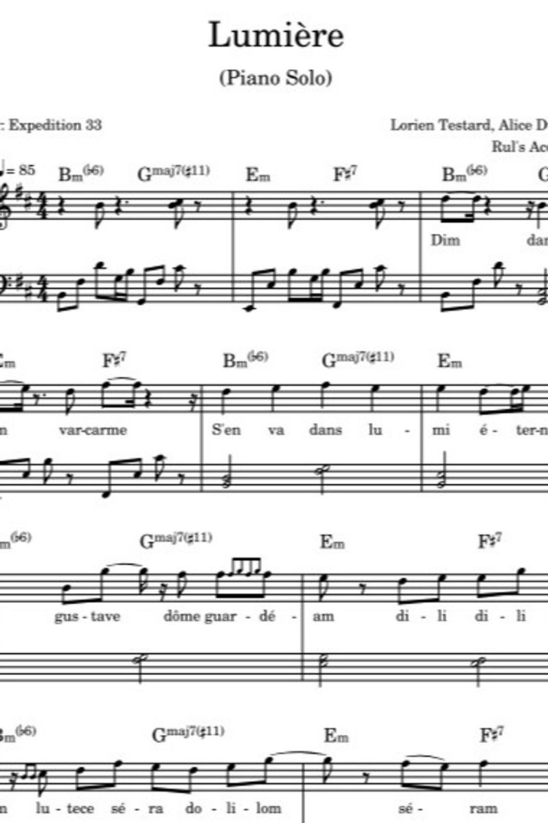 Play the Lumière - Clair Obscur Expedition 33 (Piano Solo) with this simple, easy-to-play, yet professional arrangement. Suitable for both advanced and enthusiastic students, this sheet music is clearly formatted for motivated students who want to challenge themselves with popular music.Video / Audio Samplehttps://youtube.com/shorts/i5h5UjYr4FYYour digital download includes:• Printable PDF sheet music (high-resolution, simplified version)• MP3 reference tracks for practice and listening.👉 A clean, professional sheet music edition for advanced practice and performance.Perfect for recitals, practice, or simply enjoying a dramatic modern sound at home.⸻Note: This digital sheet music is intended for personal use only. Redistribution, commercial use, or sharing in any form is strictly prohibited.