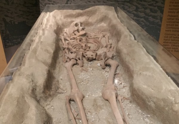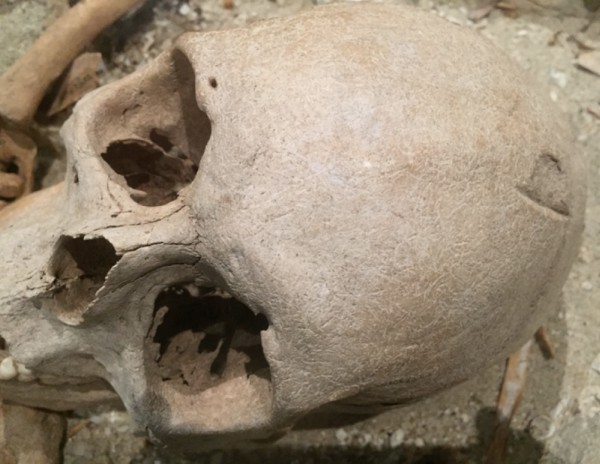 Kerangka yang ditampilkan ini ditemukan di pulau Beacon pada tahun 1963, tak lama setelah reruntuhan kapal Batavia ditemukan. Naoom Haimson adalah dokter ekspedisi yang pertama mengamati kerangka itu. Sambil menyapukan kuas pada kerangka yang terkubur dangkal selama tiga abad, dia berkata "Seorang yang bertubuh tinggi, kalian bisa lihat apa yang dia alami. Kemungkinan dia sedang lari menyelamatkan diri ketika sabetan pedang pertama menghantam bahu kanannya dari belakang. Sabetan pertama mematahkan belikat dan serangan kedua baru menghantam tengkorak dan melumpuhkannya, setidaknya itu fakta yang saya harapkan". George, seorang anggota ekspedisi lainnya menimpali "kenapa?".